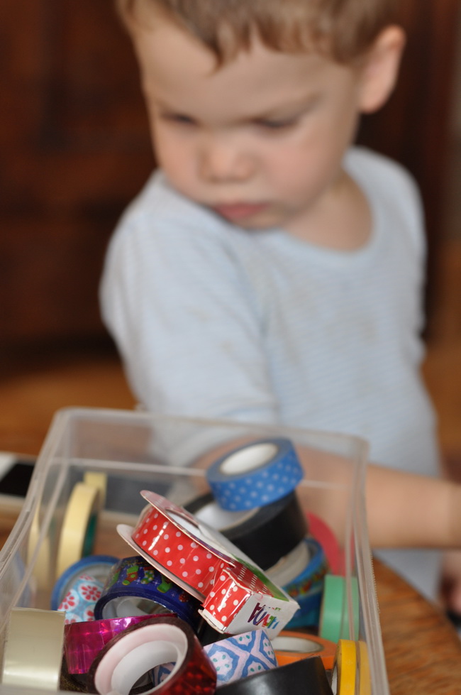 Most, hogy esik (zuhog) az eső, elég sokat voltunk idebent, de a vadonatúj fajátékokkal és némi washi szalaggal egész jól elütöttük a délutánt 🙂