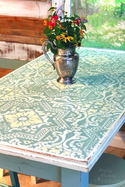 Cementlap egy régi asztal tetejére – huhh, nagyon tetszik. Az asztal meg is van hozzá, azon volt a fa Karácsonykor, most pedig – talán egy kicsit rövidebb lábbal? – tökéletes asztalka lehetne belőle a napozóágy mellé. Mondjuk nem ilyen csempét választanék, hanem valami olyat, ami megy a teraszon lerakott járólaphoz.